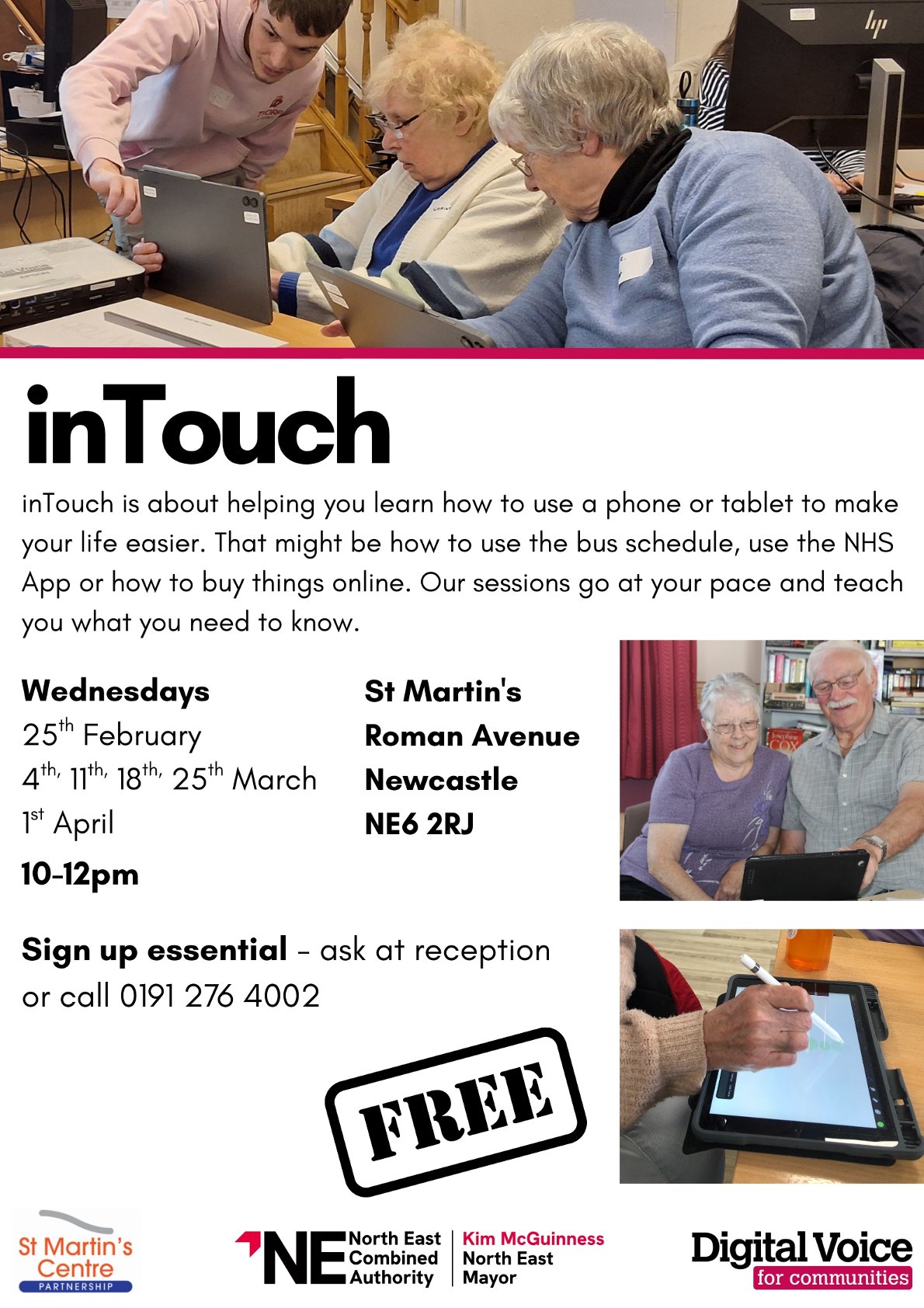 inTouch is about helping you to learn how to use a phone or tablet to make your life easier. That might be how to use the bus schedule, the NHS App or how to buy things online. Our sessions go at your own pace and teach you what you need to know.